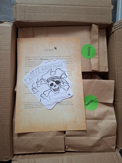 - Erinnerungsmappe – Platz für Fotos, Zeichnungen und kleine Andenken, damit eure Piratenparty unvergesslich bleibt