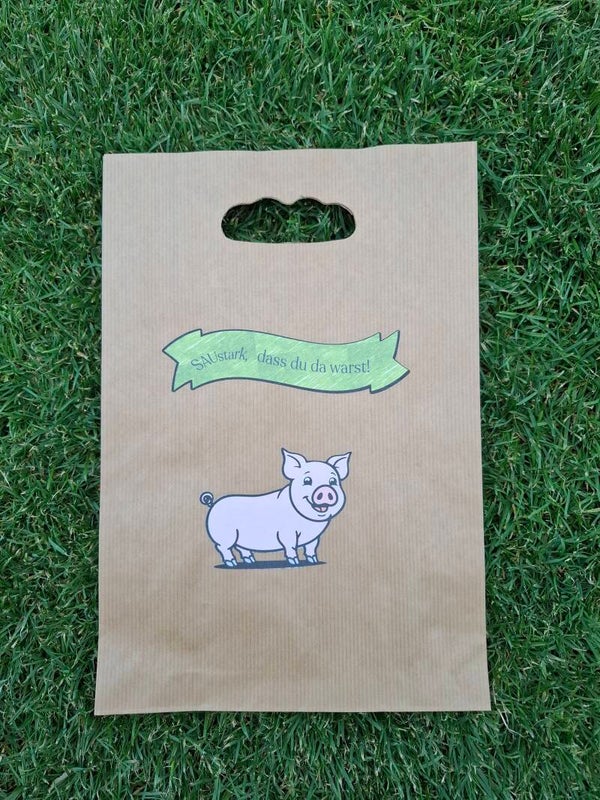 - mit einem echt tierischen Spruch wie zum Beispiel "SAUstark, dass du da warst" - immer passend zum abgedruckten Tier